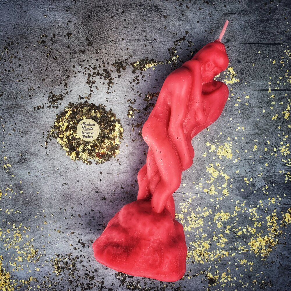 The Lovers' Passion candle represents passionate love, romantic desire, reigniting passion, sensual connection, and the fire of love. This beeswax lovers' passion candle captures the sacred energy of two lovers united in passion, helping you ignite new romance, bring back a lost lover, reignite the spark in your relationship, and manifest passionate, sensual love.